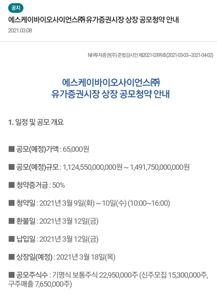 | SK바이오사이언스 공모주 청약 후기(2탄) (44) | 2021.03.26 |