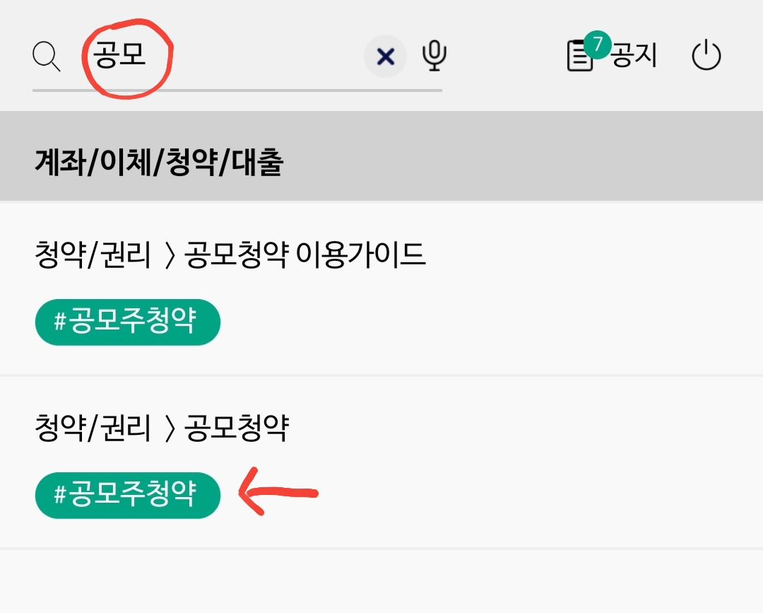 앱 실행 후 검색창에 '공모'를 검색하면 모두 공모주 청약 화면으로 바로 넘어갈 수 있으니