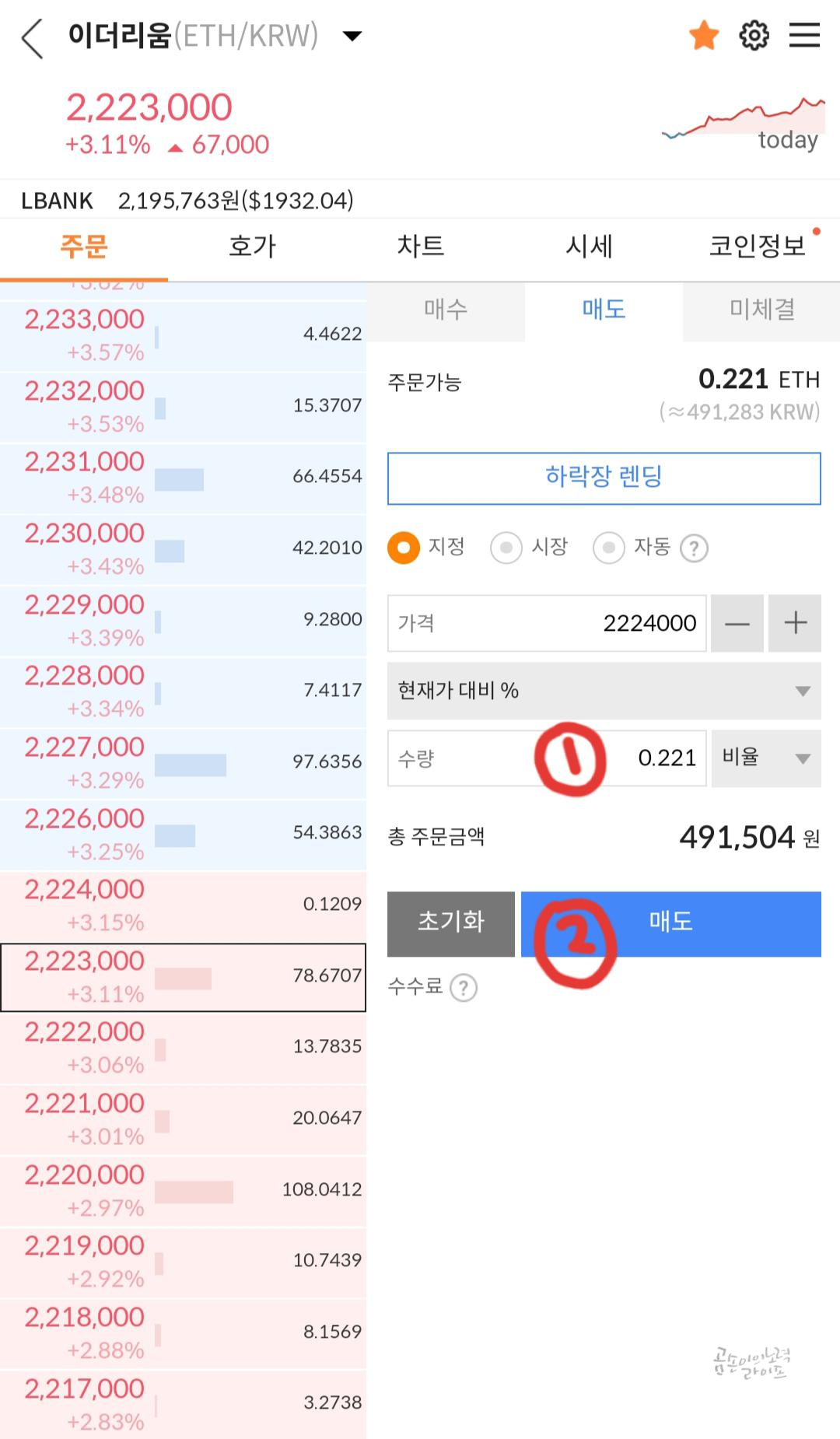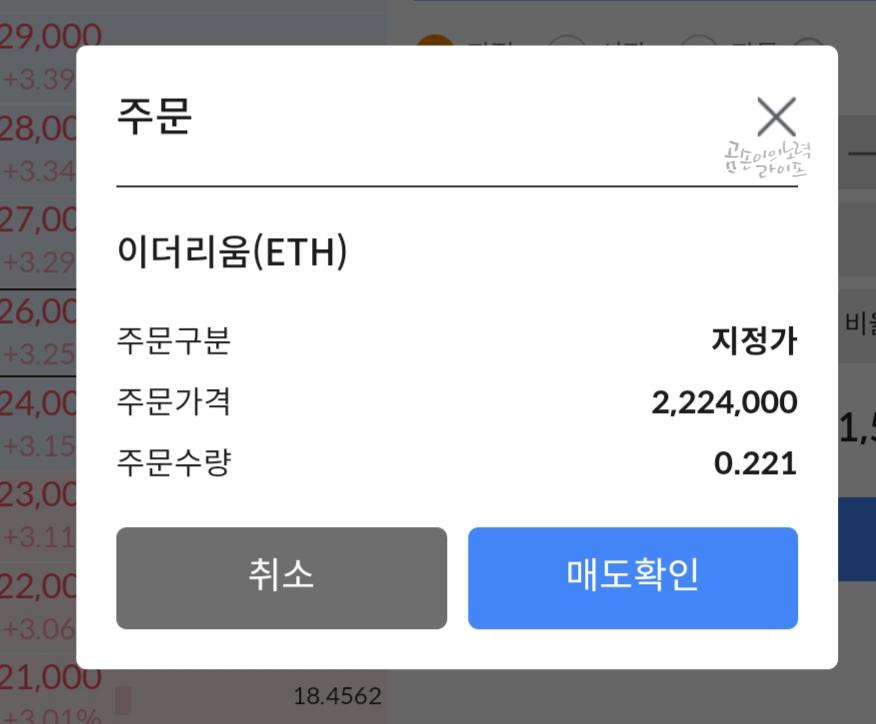 이더리움은 여전히 손실이었지만 비트코인에서 만회를 해 주었기 때문에 미련 없이 매도 버튼을 눌렀습니다.