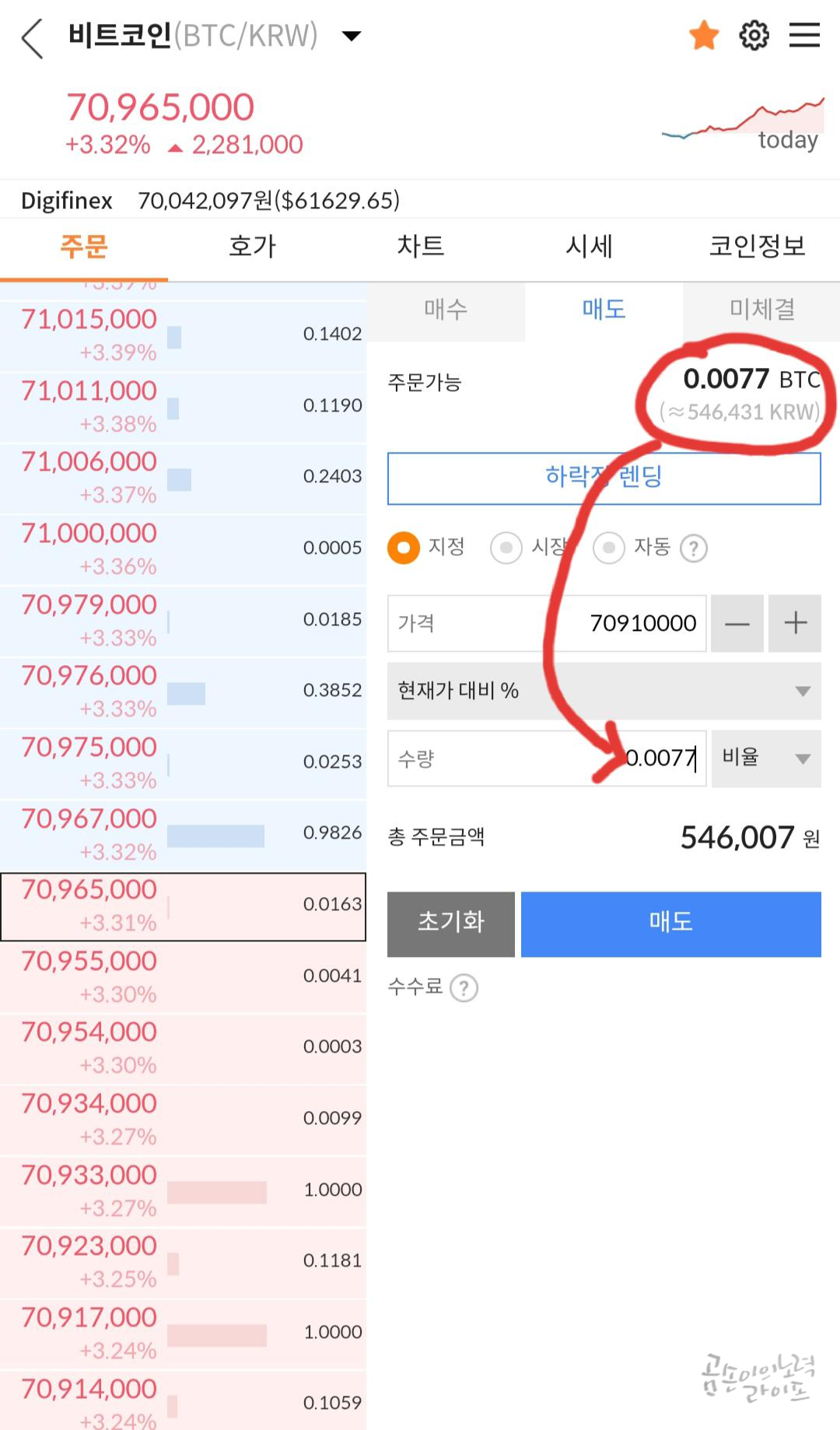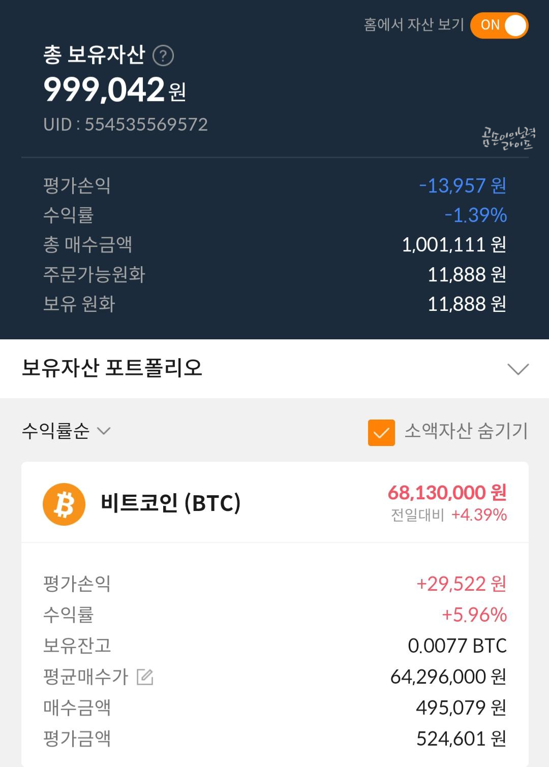 비트코인이 7,000만 원을 돌파하면서 약 3만 원의 수익이 생겼습니다.
