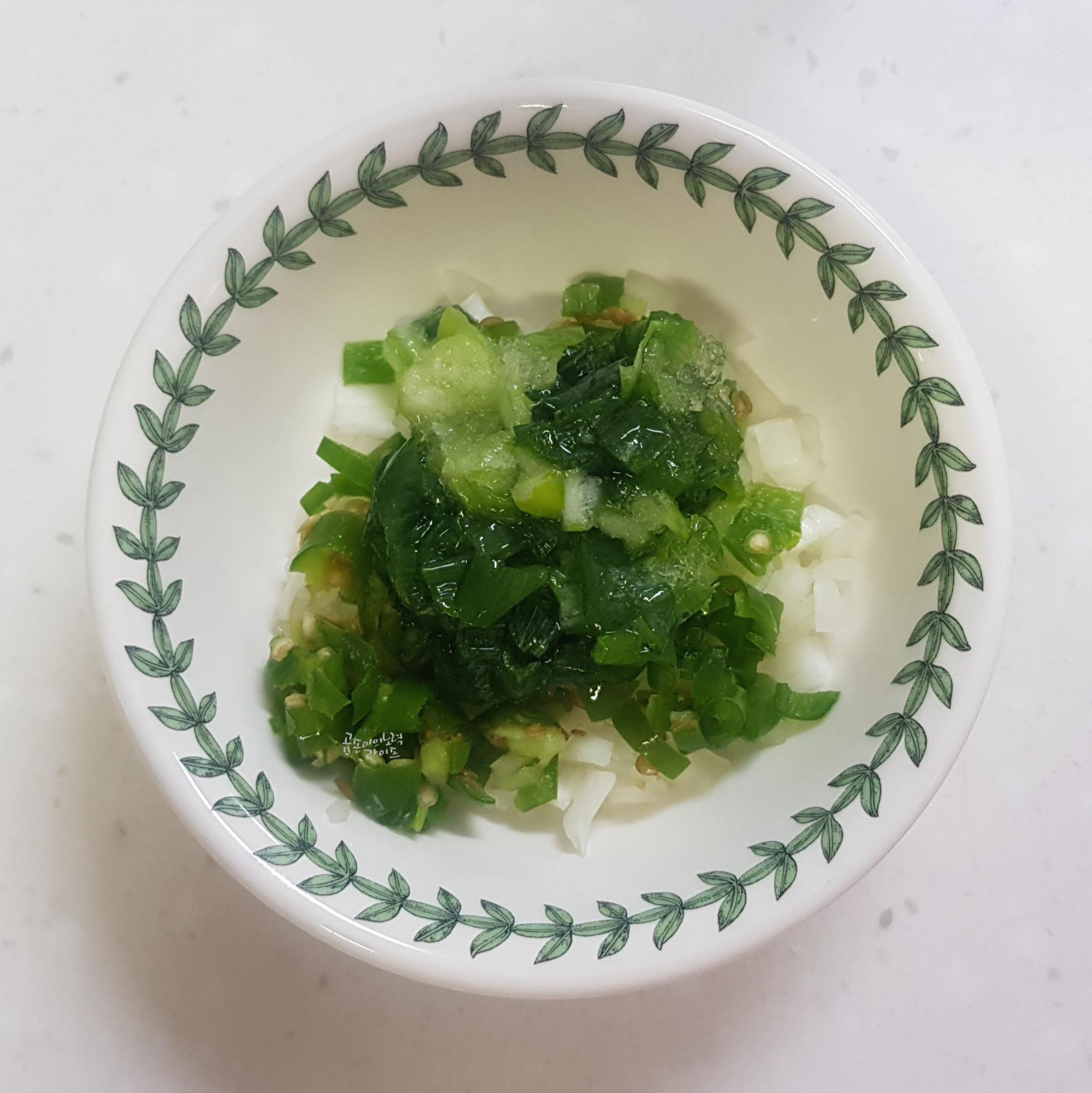 대파 1 뿌리(썰어놓은 것 3 숟가락 정도)