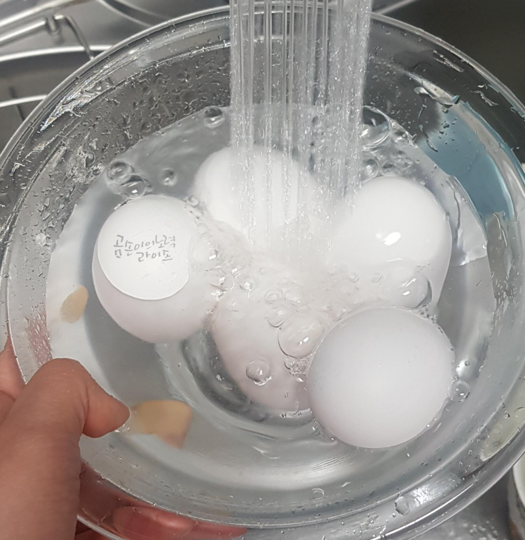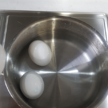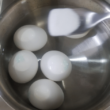 - 처음부터 달걀을 넣고 물이 끓으면 불을 끈 후 2~3분 후 찬물에 담가놓기