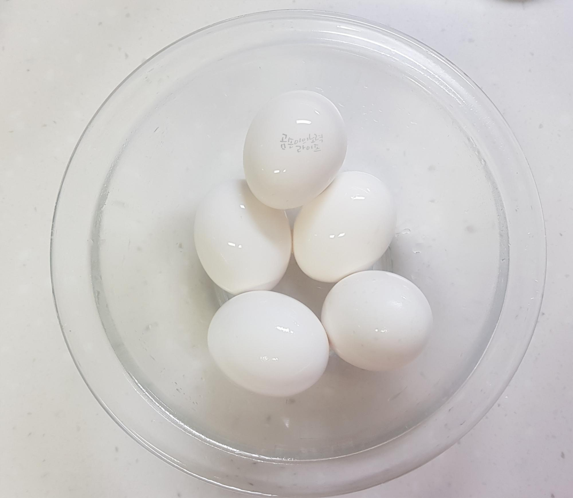 - 물이 끓으면 달걀을 넣고 5분 후 찬물에 담가놓기